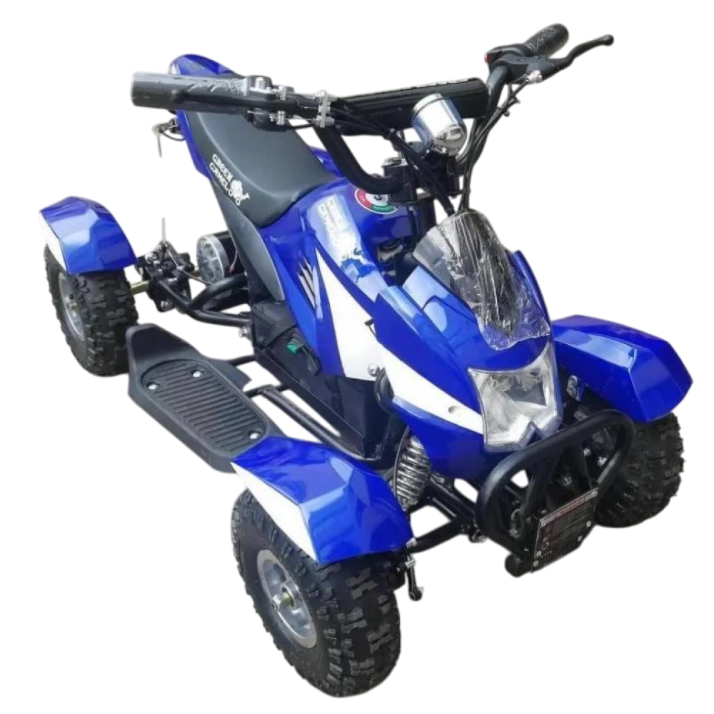 Модель рассчитана на юных райдеров начиная с 3-х летнего возраста с максимальным весом 60 кг. Электроквадроцикл оснащен надежным двигателем мощностью 350 Вт, позволяет достигать скоростных характеристик до 18 км/час. Гелевый АКБ рассчитан на 700 циклов заряд/разряд, что достаточно для преодоления расстояния до 15 км. Колесные диски и шасси с цепным приводом передачи предусмотрены производителем для повышенной комфортности и проходимости модели. Использование фирменных деталей при сборке обеспечивают абсолютную безопасность передвижения юного пользователя.