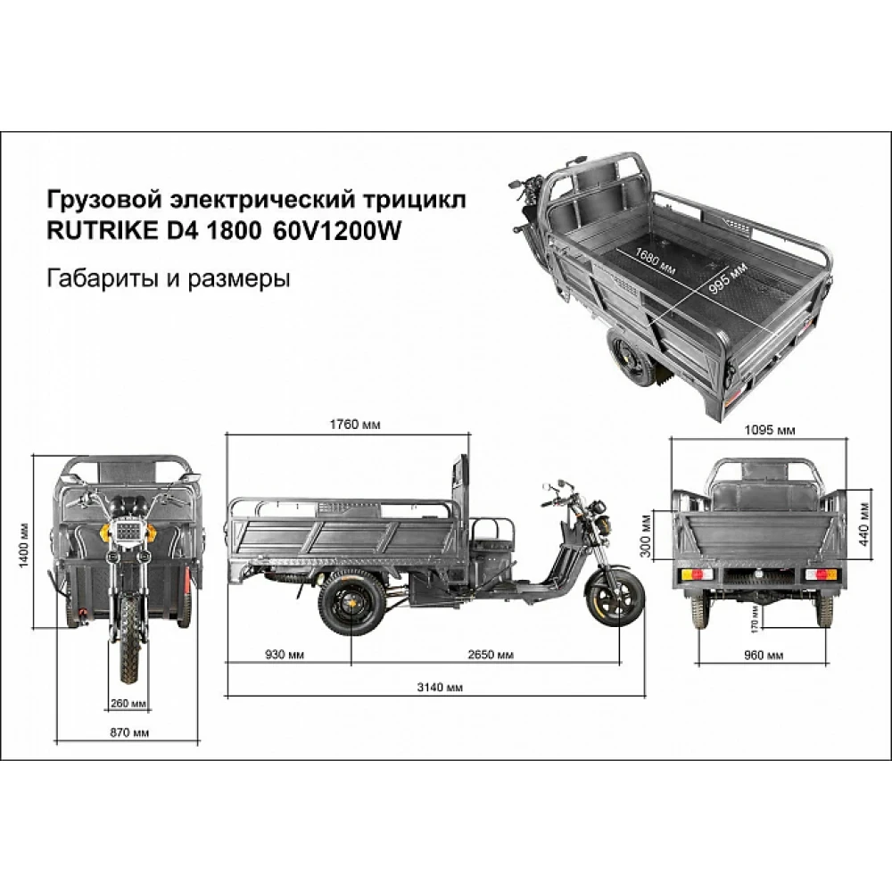 Грузовой электротрицикл Rutrike D4 1800 60V1500W темно-серый