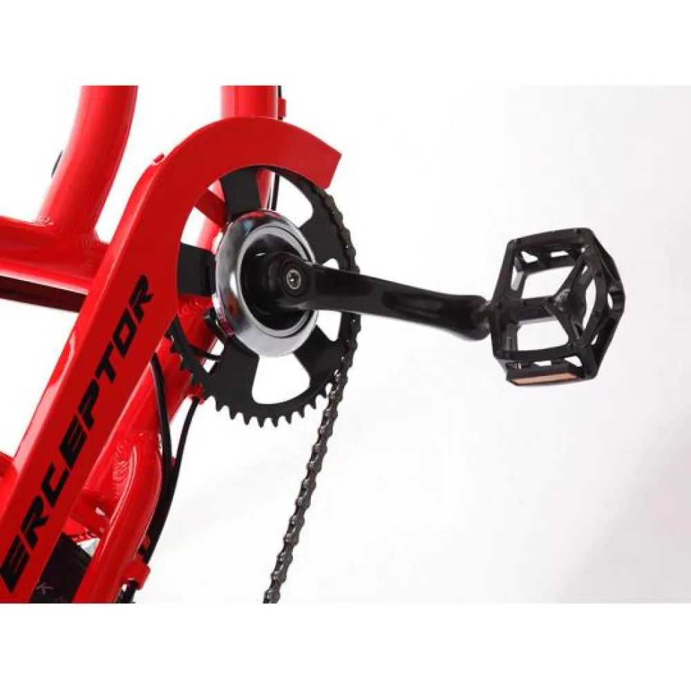 Колеса диаметром 26 дюймов, широкие резиновые покрышки улучшают сцепление с дорожным покрытием. Дисковые тормоза позволяют уверенно маневрировать в транспортном потоке. Электрический велосипед Pedego Interceptor Step-THRU рассчитан на относительно ровную дорогу, имеет жесткую подвеску.