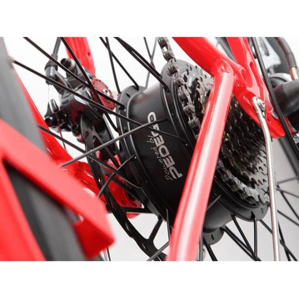 Электрический велосипед Pedego Interceptor Step-THRU оборудован мощным двигателем 500 Вт, легко преодолевает подъемы, набирает максимальную скорость 33 км/ч. Редукторный двигатель имеет плавное ускорение и экономное энергопотребление. Емкий литий-ионный аккумулятор емкостью 10 А*ч, на его заряде транспортное средство может проехать 65 км пути. Пополнить заряд батареи можно за 4 часа через зарядное устройство.
