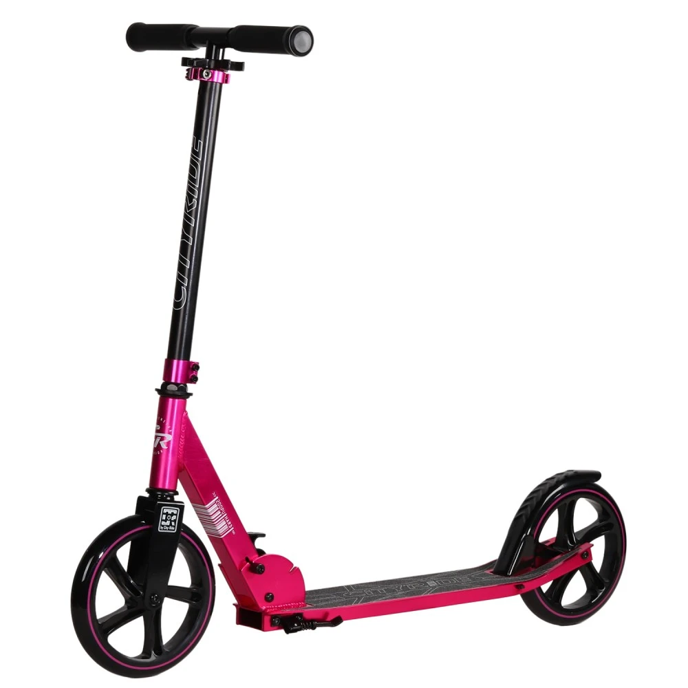 Городской самокат City Ride 200 розовый – шикарная складывающаяся техника грузоподъемностью до 100 кг предназначена для пользователей начиная от 8-летнего возраста. Накатистая часть допускает эксплуатацию в пределах города. Оснащенность самоката амортизационной системой делает движение плавным, минимизирует вибрации.